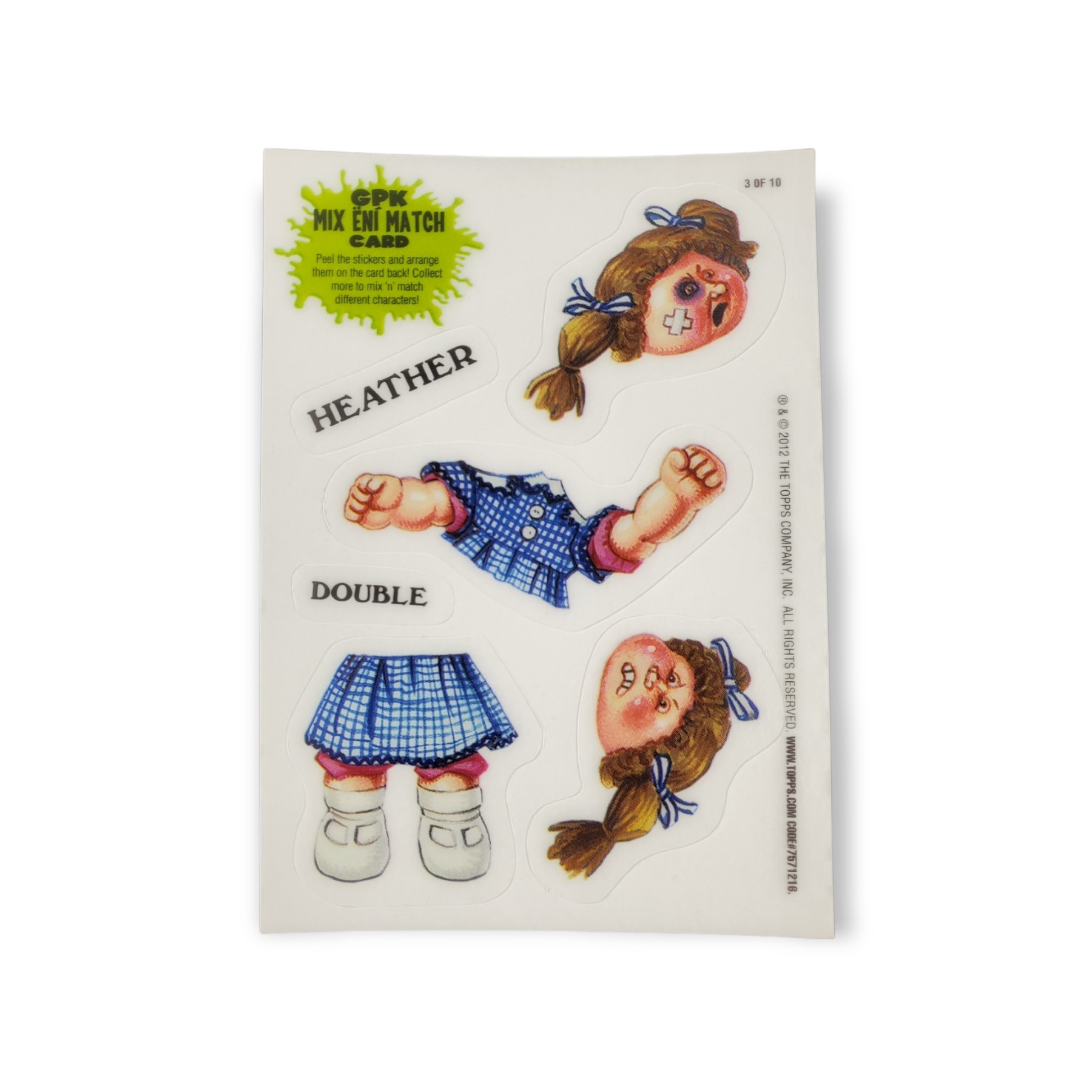 2012 Topps Garbage Pail Kids Brand New Series Mix ‘n’ Match Stickers #3 Double Heather Trading Card