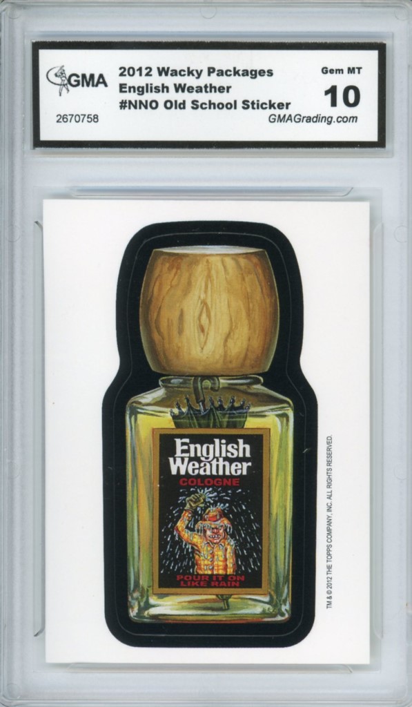 2012 Topps Wacky Packages Old School Series 4 English Weather Sticker Ludlow Back Variation GMA Professional Graded 10 Gem MT