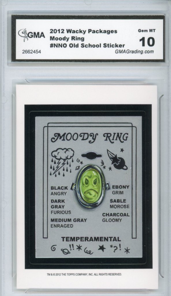 2012 Topps Wacky Packages Old School Series 4 Moody Ring Temperamental Sticker Ludlow Back Variation GMA Professional Graded 10 Gem MT