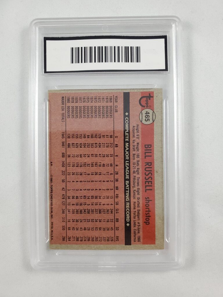 Bill Russell 1981 Topps GMA Professional Graded 8 NM-MT Baseball Card #465