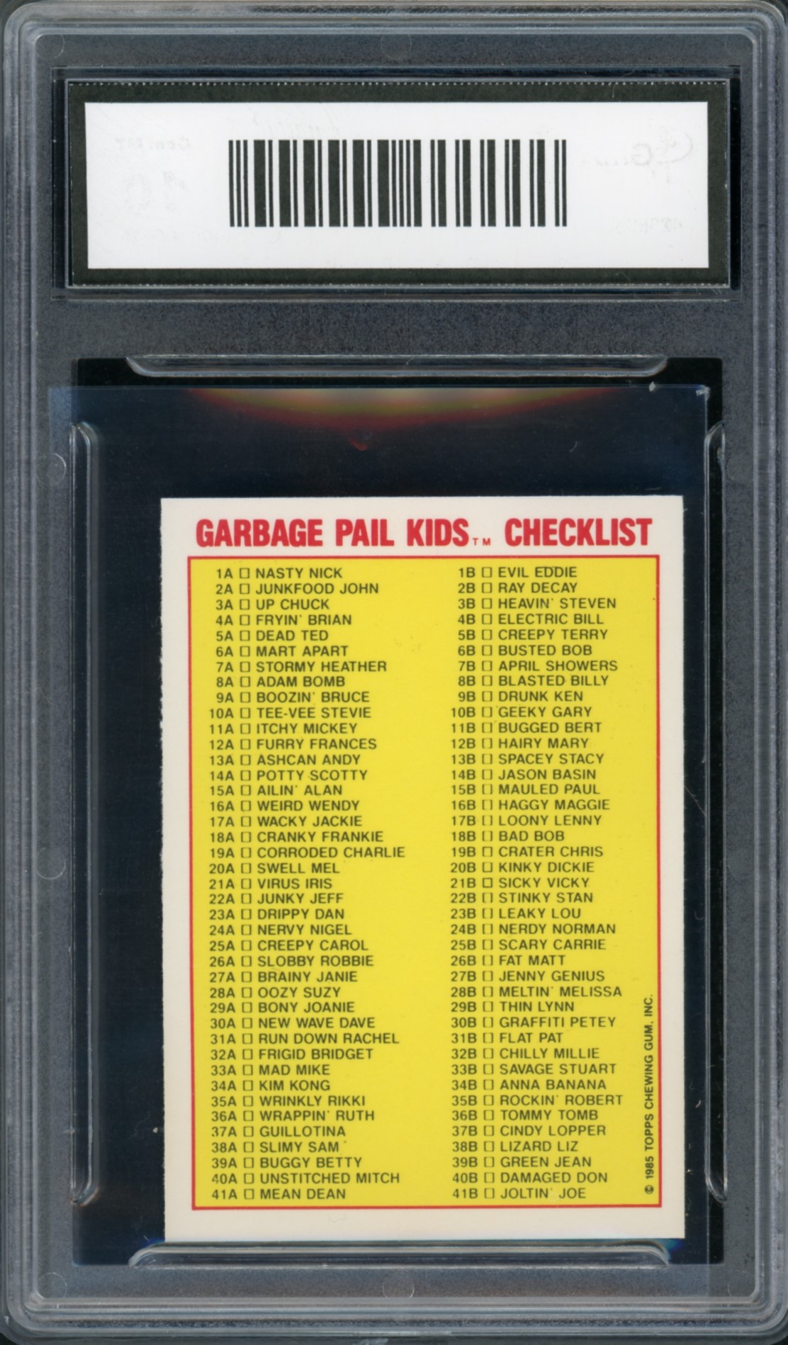Bony Joanie Checklist 1985 Garbage Pail Kids U.K. Mini Series GMA Professional Graded 8.5 NM-MT+ Non-Sport Trading Card #29a