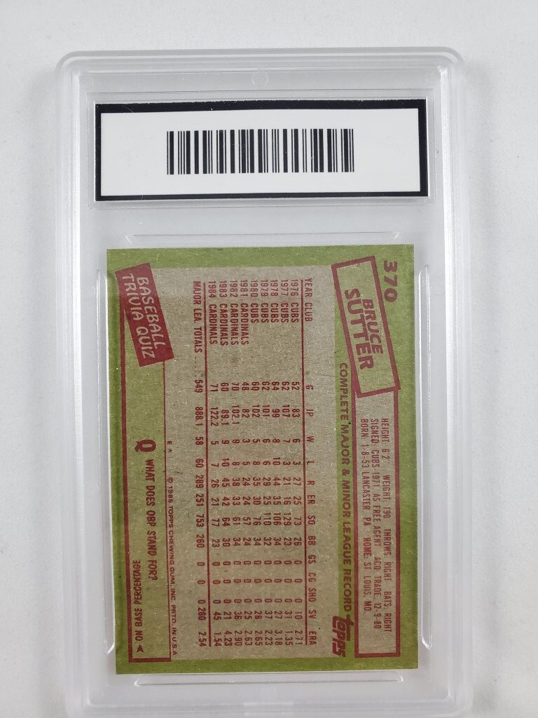 Bruce Sutter 1985 Topps GMA Professional Graded 9 Mint Baseball Card #370