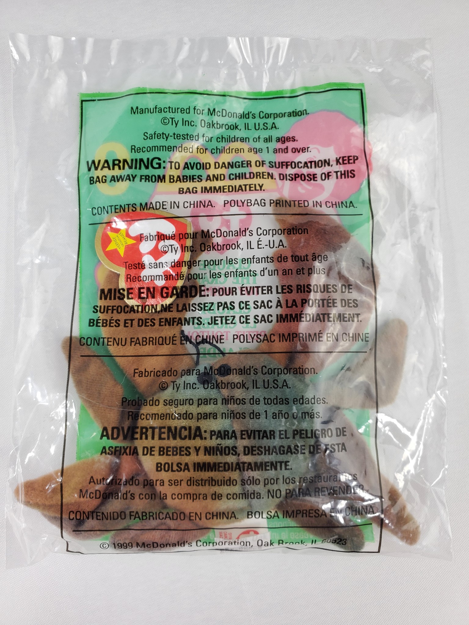 Claude The Crab Ty Teenie Beanie Babies McDonalds USA 1999 Promotion Happy Meal Toy Bag #9 5″ Crab in its original mint condition sealed packaging.