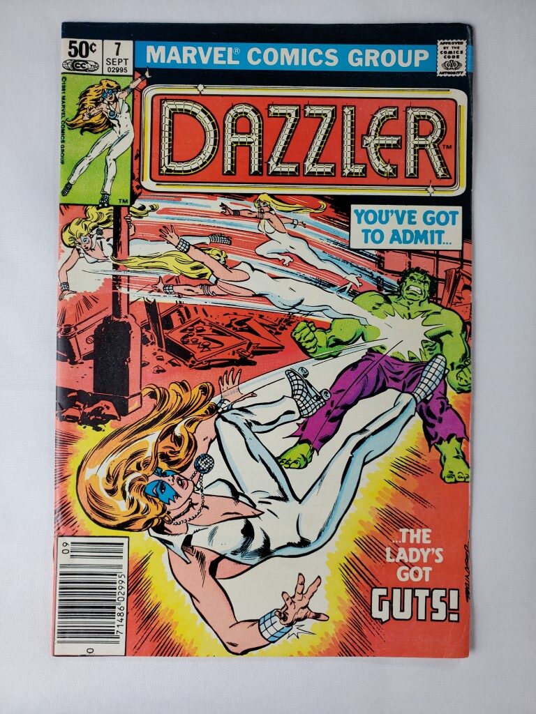 Dazzler Issue #7 You’ve Got to Admit the Lady’s Got Guts! Marvel Comics 1981 Newsstand Variant Featuring Dazzler & Hulk.