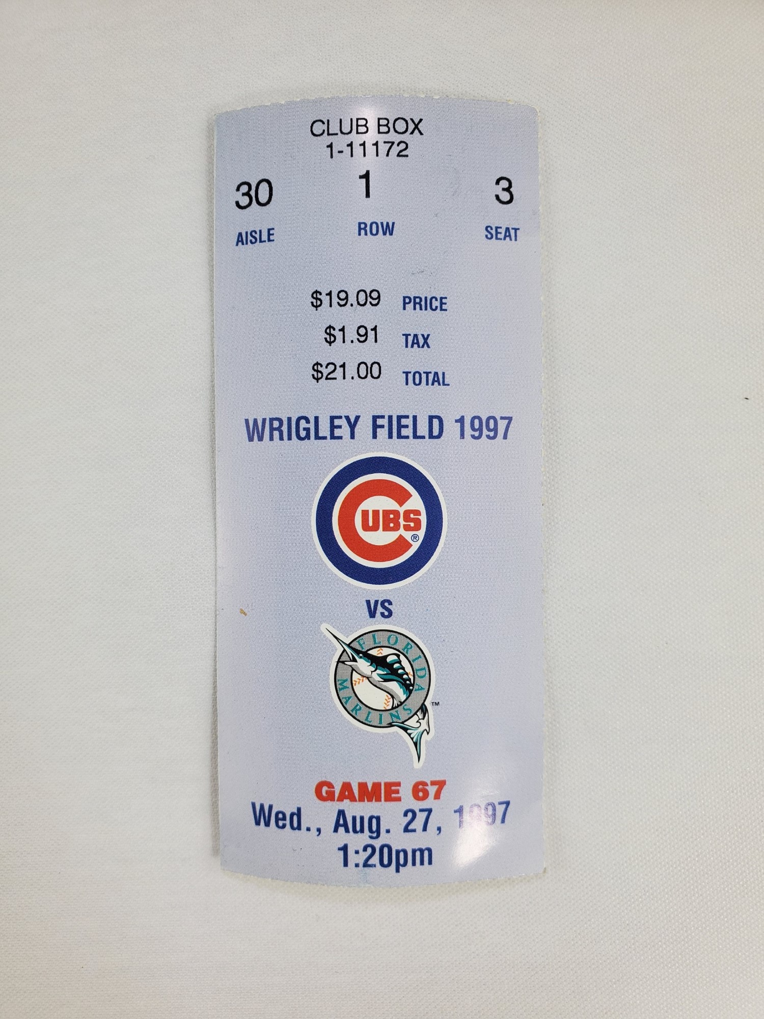 Devon White Game Used Cooper Pro 100 T141 Florida Marlins Professional Baseball Bat – Included with the bat is the original Club Box Row 1 baseball game ticket from August 27, 1997 Chicago Cubs Vs Florida Marlins Game 67 played at Wrigley Field where this bat was used and first obtained. Each game used bat should be assumed to have a small crack in it, while others may be cracked more severely. Whether it be a crack, a chip, or completely broken bat, the ball player who used this bat chose to retire it from game use after it sustained one or more of the previously mentioned defects. This bat was most recently obtained through Hindman Auctions, one of the nation’s leading and most reputable auction houses. If you are interested in the proof of purchase for this item from Hindman Auctions, please leave us a note during checkout or you may send us a message once your order has been placed and we will be sure to provide you with a copy.