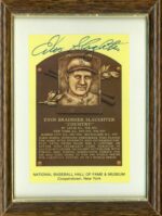 Enos Slaughter Signed HOF Plaque Autographed & Framed Baseball Hall of Fame Postcard with a Certificate of Authenticity. The Baseball Hall of Fame Plaque size is 3 1/2″ X 5 1/2″ and the dimensions of the frame are 5 1/2″ X 7 1/2″.