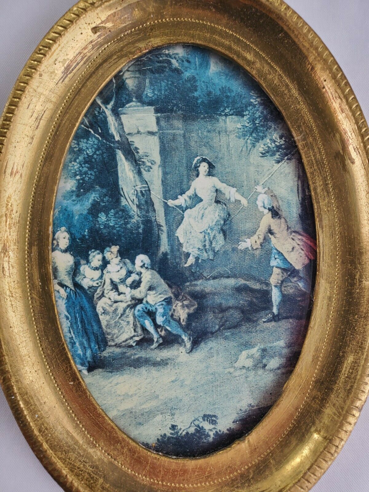 Gold Leaf Framed Fine Art Print of Woman on Swing Scene 5×7 Made in Italy