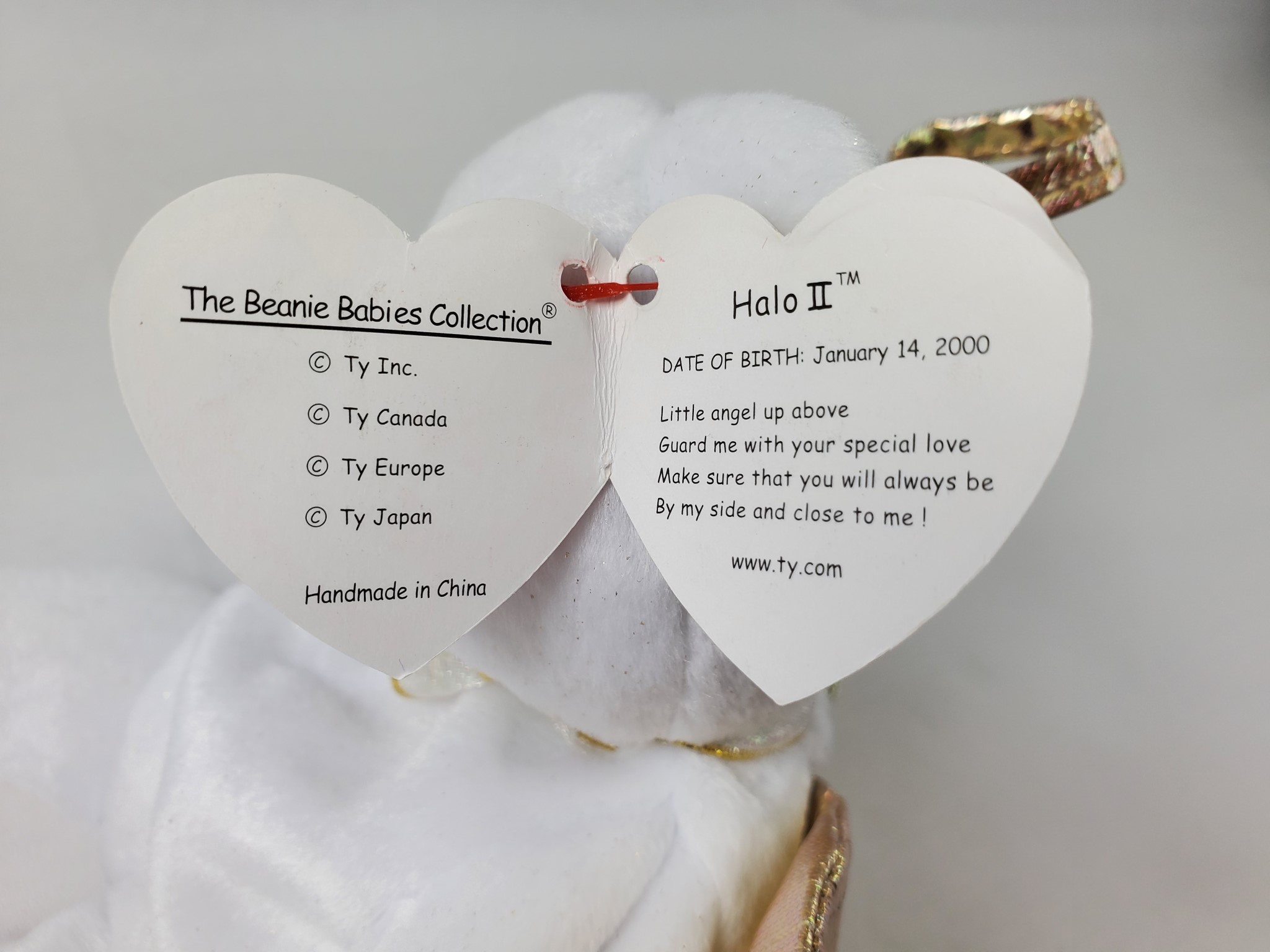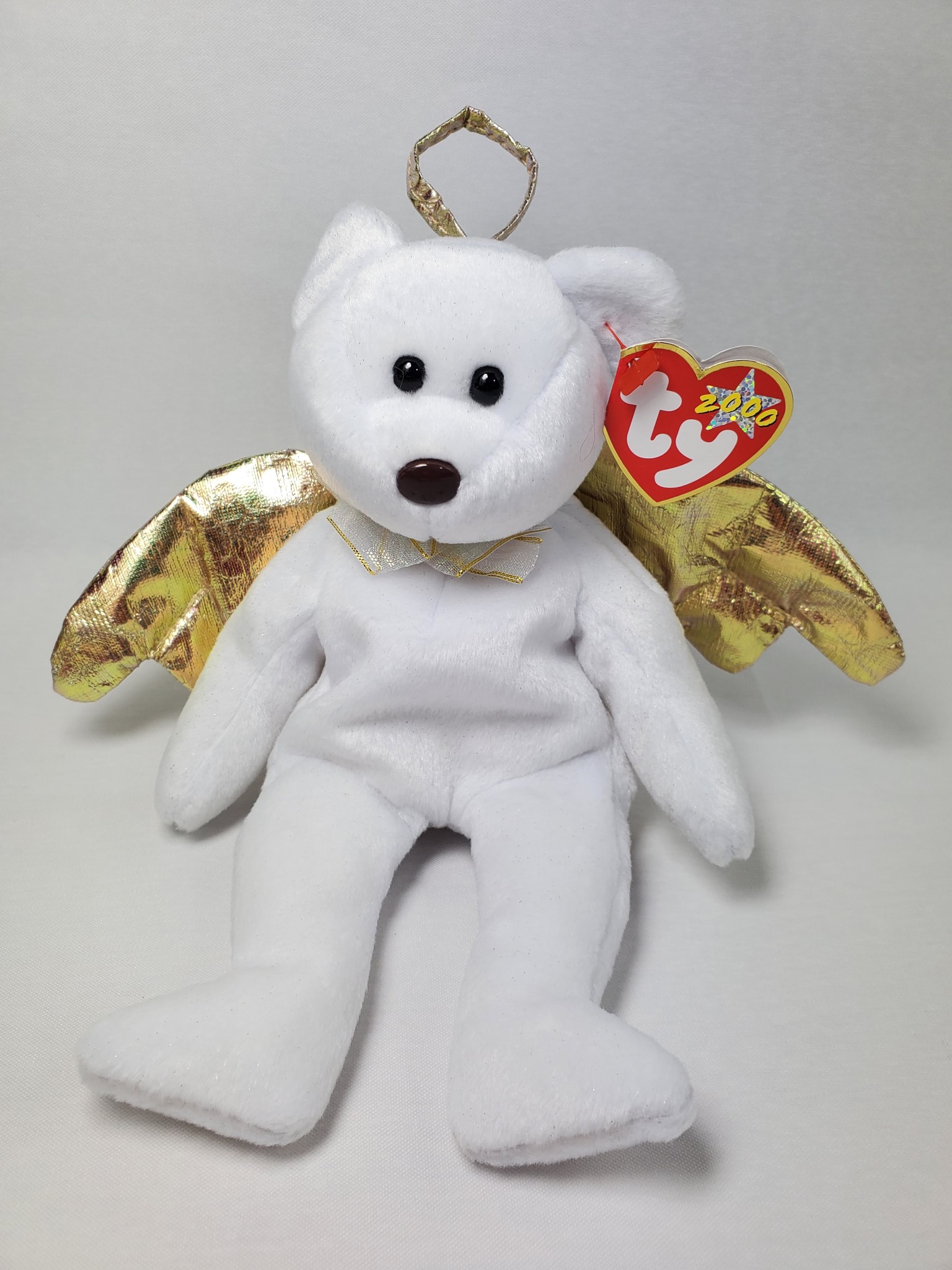 Ty Original Beanie Baby Halo II 2000 Style Number 4269 6th Generation Hang Tag 9th Generation Tush Tag Halo & Irredescent Wings 9″ Bear in mint condition with mint tags.