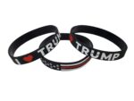 Trump 2024 Bracelet Stars, Stripes, & Flag Adult Silicone Wristband. Show your support for electing Donald Trump as President in 2024 with this stylish red, black & white American Wristband. Each bracelet measures 202mm x 12mm x 2mm which is the standard size. The silicone band stretches onto your wrist with ease and comfortably fit adults. This listing is for 1 quantity bracelet per order. Discounts up to 15% off are available for multiple bracelets purchased. Take a look at our other listings for additional colors and bracelet designs.