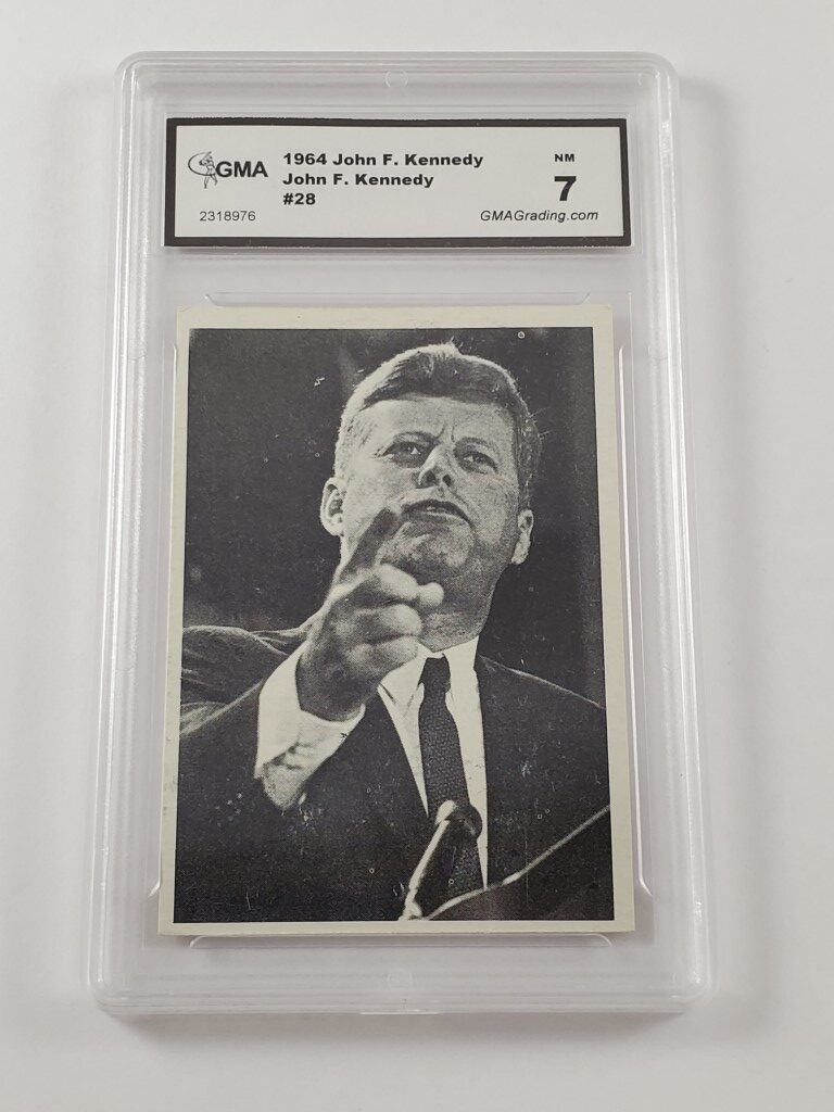 President Kennedy Address On His Civil Rights Stand 1964 Topps John F. Kennedy Non-Sport Trading Card #28 – GMA Professional Graded 7 NM