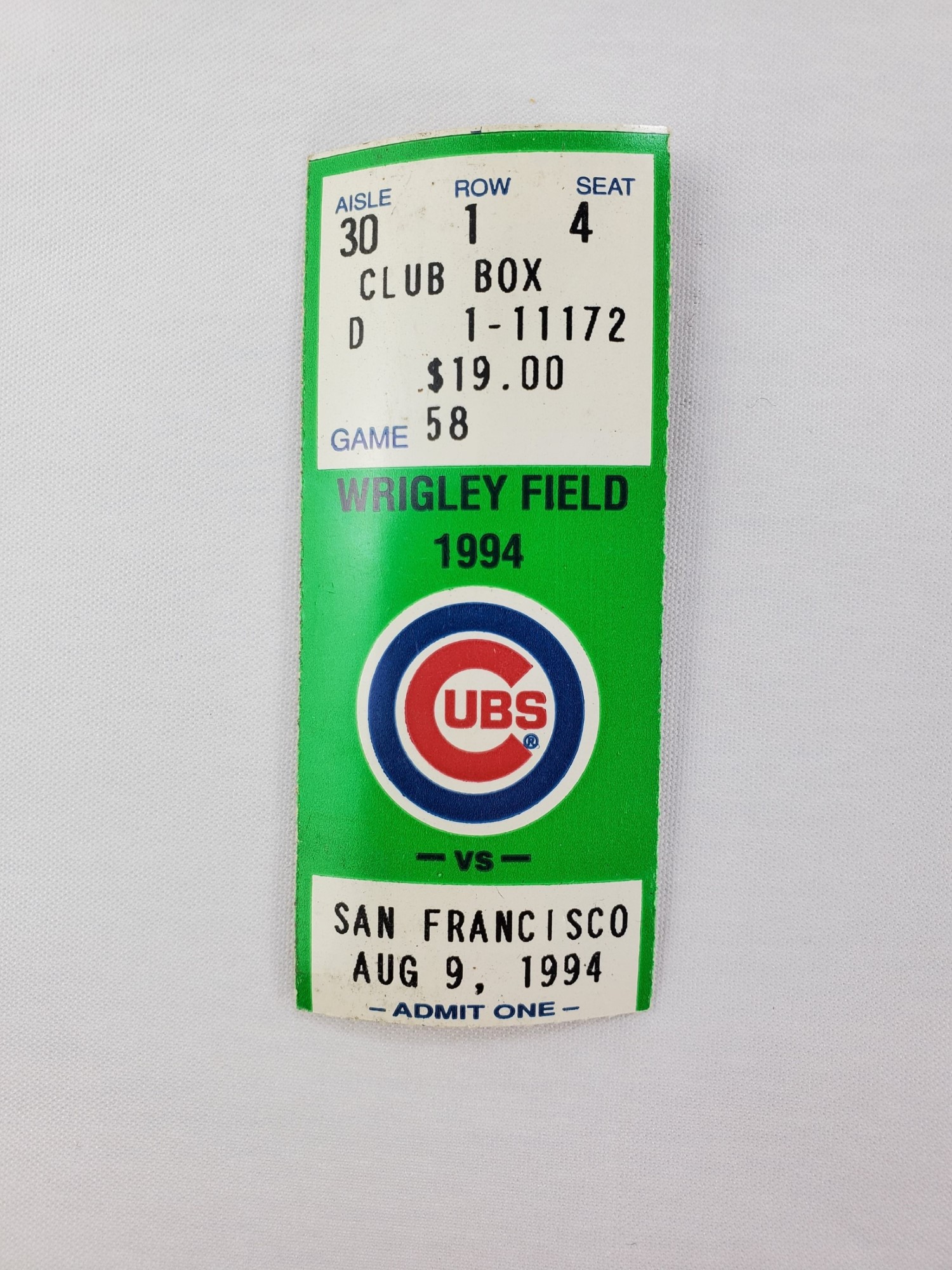 John Burkett Game Used Cooper Pro 100 C271 San Francisco Giants Professional Baseball Bat – Included with the bat is the original Club Box Row 1 baseball game ticket from August 9, 1994 Chicago Cubs Vs San Francisco Giants Game 58 played at Wrigley Field where this bat was used and first obtained. Each game used bat should be assumed to have a small crack in it, while others may be cracked more severely. Whether it be a crack, a chip, or completely broken bat, the ball player who used this bat chose to retire it from game use after it sustained one or more of the previously mentioned defects. This bat was most recently obtained through Hindman Auctions, one of the nation’s leading and most reputable auction houses. If you are interested in the proof of purchase for this item from Hindman Auctions, please leave us a note during checkout or you may send us a message once your order has been placed and we will be sure to provide you with a copy.