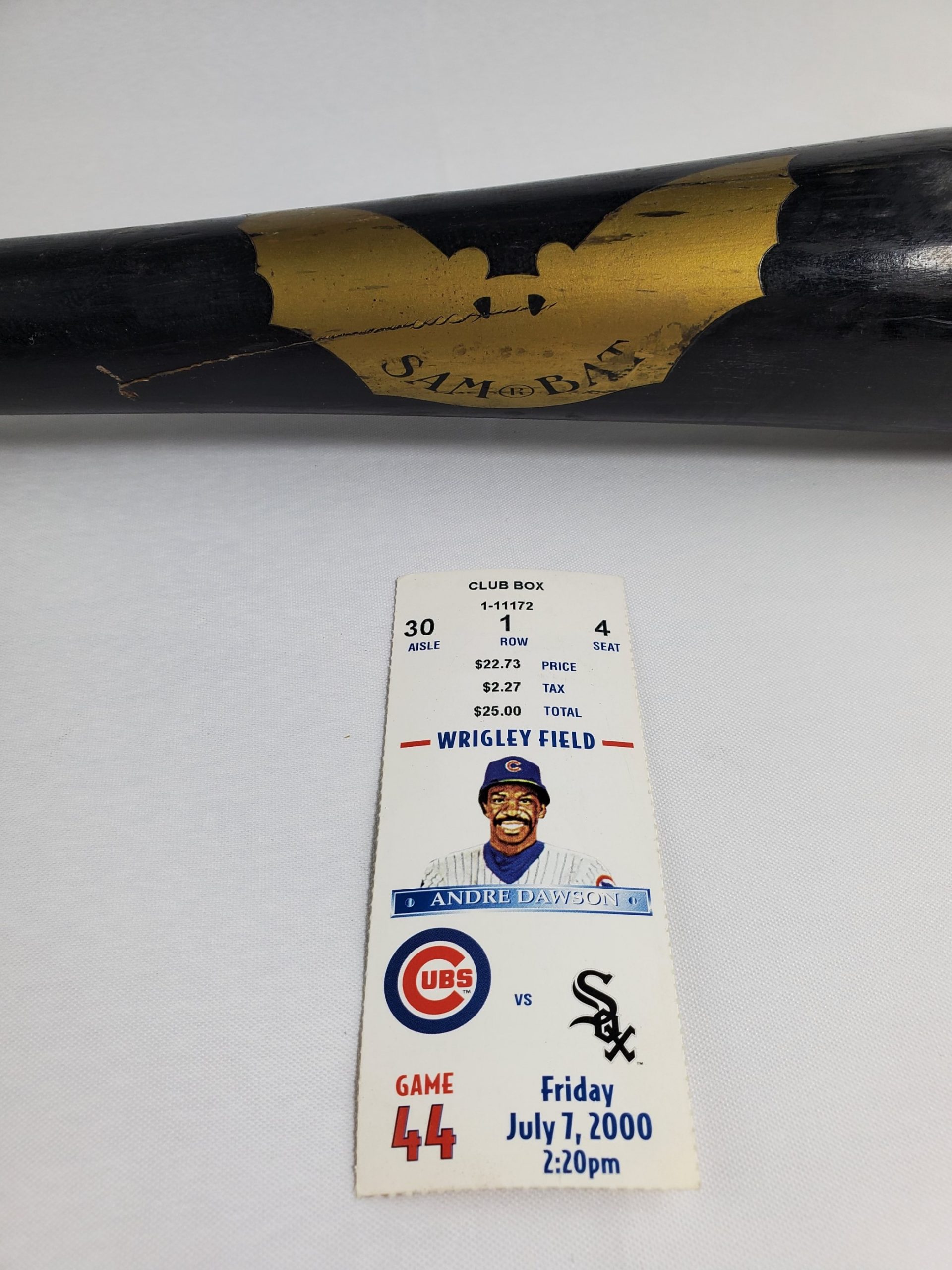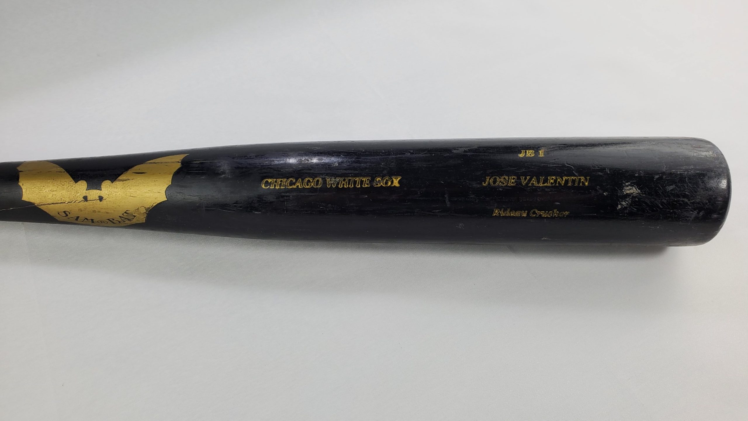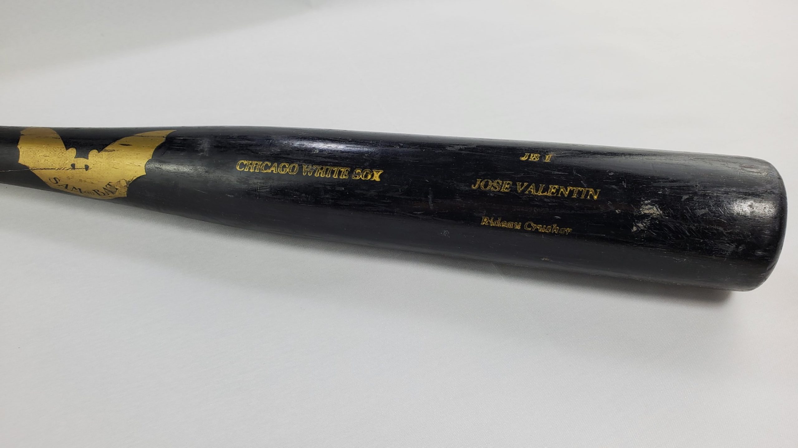 Jose Valentin Game Used Sam Bat JB1 Rideau Crusher Chicago White Sox Professional Baseball Bat – Included with the bat is the original Club Box Row 1 baseball game ticket from July 7, 2000 Chicago Cubs Vs Chicago White Sox Game 44 played at Wrigley Field where this bat was used and first obtained. Each game used bat should be assumed to have a small crack in it, while others may be cracked more severely. Whether it be a crack, a chip, or completely broken bat, the ball player who used this bat chose to retire it from game use after it sustained one or more of the previously mentioned defects. This bat was most recently obtained through Hindman Auctions, one of the nation’s leading and most reputable auction houses. If you are interested in the proof of purchase for this item from Hindman Auctions, please leave us a note during checkout or you may send us a message once your order has been placed and we will be sure to provide you with a copy.