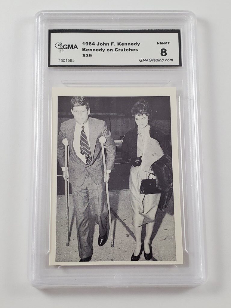Kennedy On Crutches 1964 Rosan John F. Kennedy Non-Sport Trading Card #39 – GMA Professional Graded 8 NM-MT
