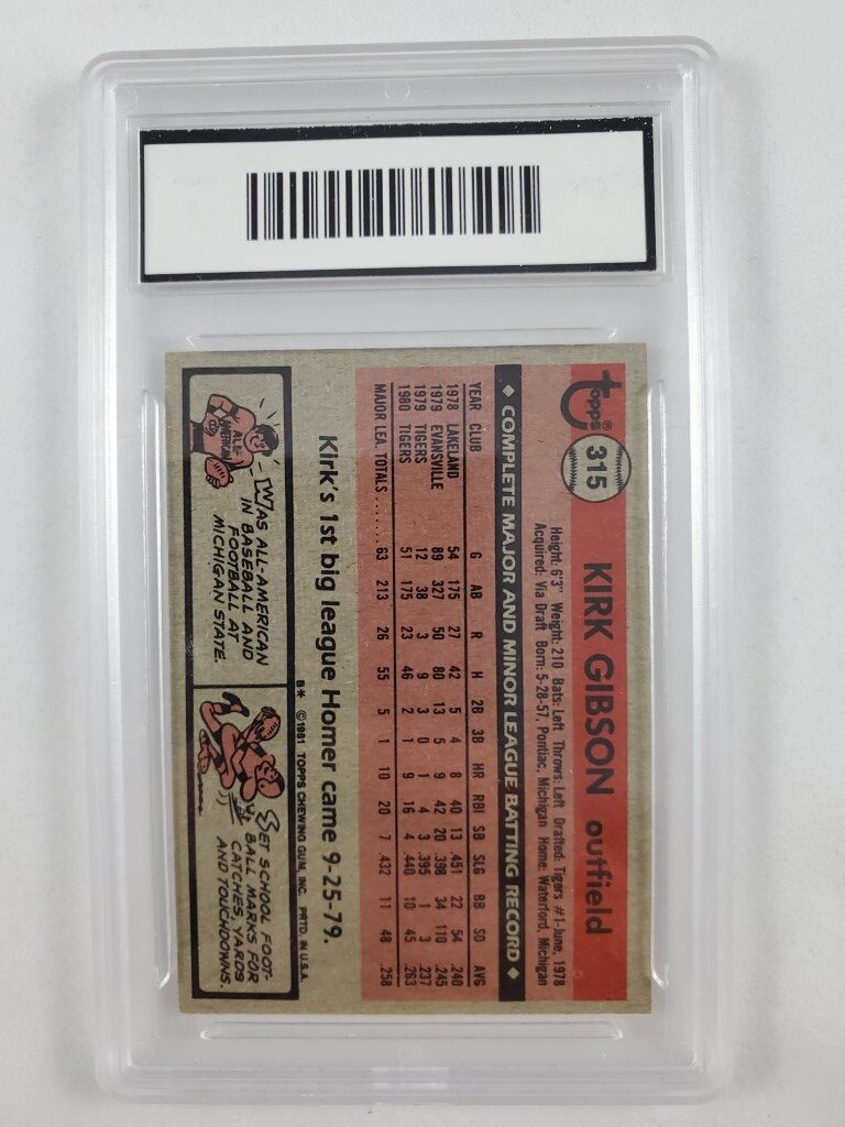 Kirk Gibson 1981 Topps Rookie GMA Professional Graded 8 NM-MT Baseball Card #315