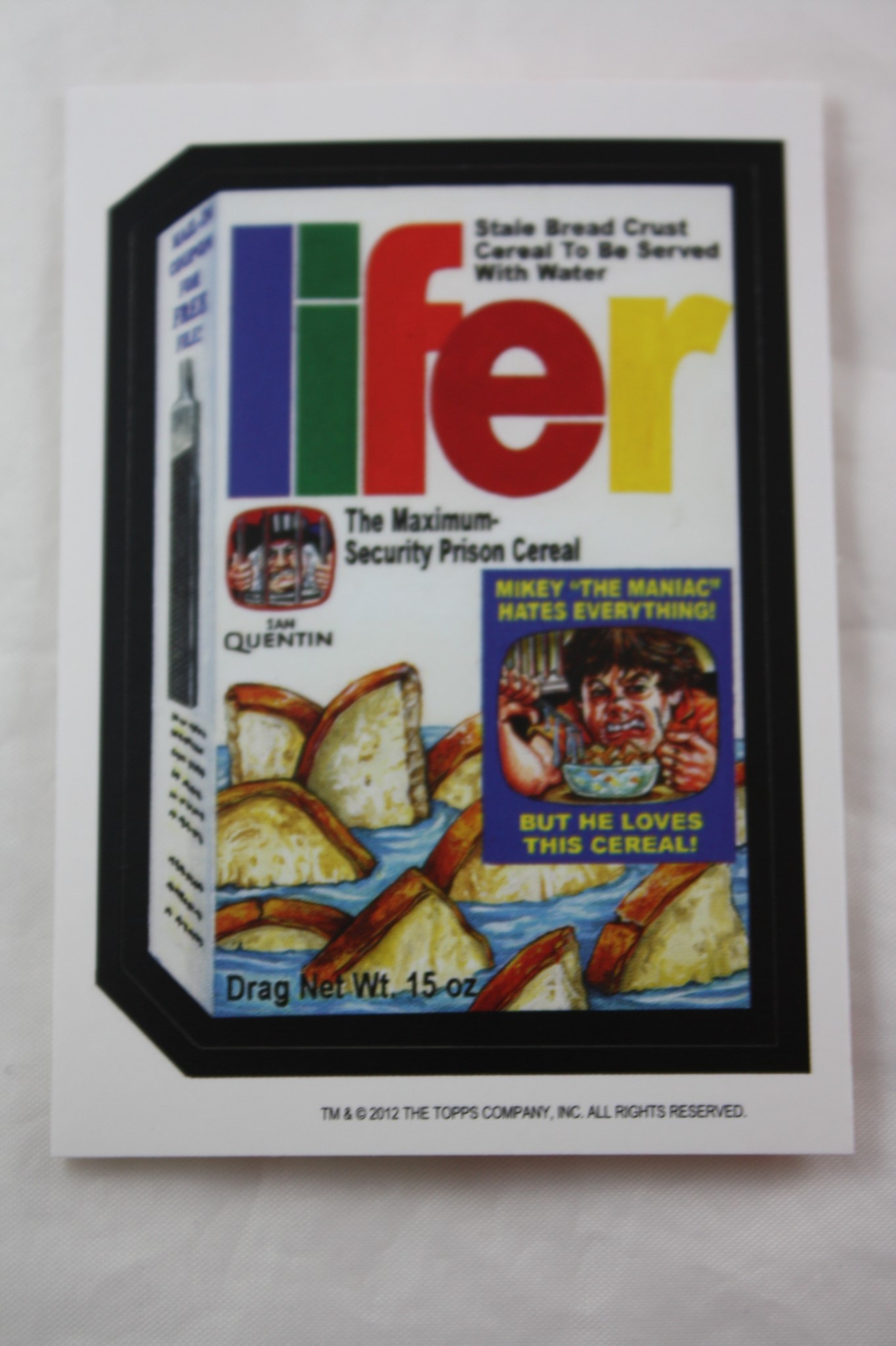 Lifer Cereal Topps 2012 Wacky Packages Old School 4 Sticker Trading Card – The Topps 2012 Wacky Packages Old School Series 4 trading card set includes 33 base stickers, 16 wrapper stickers & 9 Topps Baseball Old School All-Stars cards. The 33 base stickers come in 3 different variations; a ludlow back, a tan back and a white back. The 16 wrapper stickers also have the same 3 card back variations. Please let us know leave a note during checkout if you have a preference in which card backing you would like to receive and we will do our best to accommodate your selection.