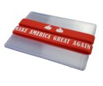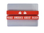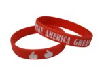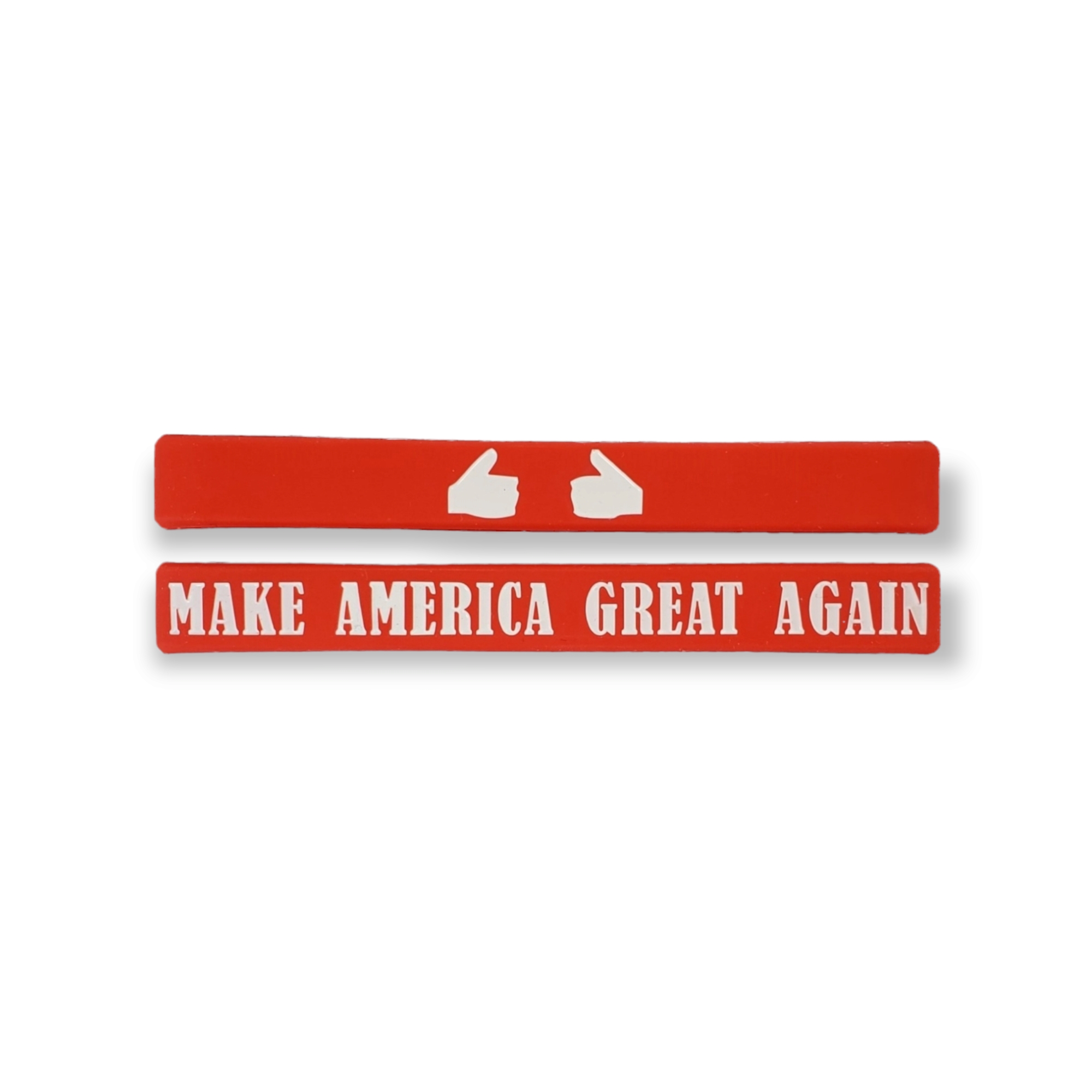 Trump 2024 Bracelet Stars, Stripes, & Flag Adult Silicone Wristband. Show your support for electing Donald Trump as President in 2024 with this stylish red, black & white American Wristband. Each bracelet measures 202mm x 12mm x 2mm which is the standard size. The silicone band stretches onto your wrist with ease and comfortably fit adults. This listing is for 1 quantity bracelet per order. Discounts up to 15% off are available for multiple bracelets purchased. Take a look at our other listings for additional colors and bracelet designs.