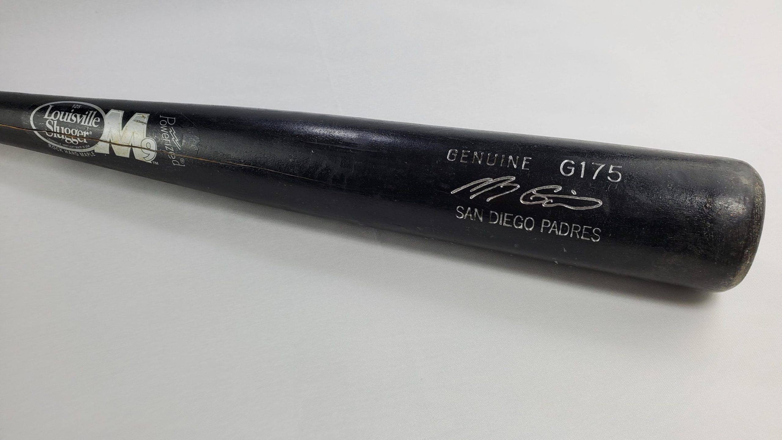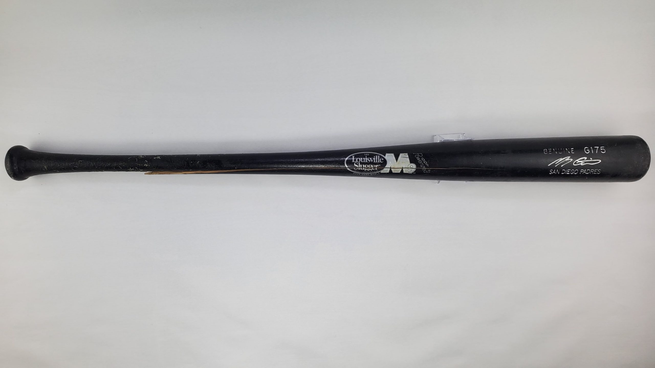 Marcus Giles Game Used Louisville Slugger G175 San Diego Padres Professional Baseball Bat – Included with the bat is the original Club Box Row 1 baseball game ticket from April 17, 2007 Chicago Cubs Vs San Diego Padres played at Wrigley Field where this bat was used and first obtained. Each game used bat should be assumed to have a small crack in it, while others may be cracked more severely. Whether it be a crack, a chip, or completely broken bat, the ball player who used this bat chose to retire it from game use after it sustained one or more of the previously mentioned defects. This bat was most recently obtained through Hindman Auctions, one of the nation’s leading and most reputable auction houses. If you are interested in the proof of purchase for this item from Hindman Auctions, please leave us a note during checkout or you may send us a message once your order has been placed and we will be sure to provide you with a copy.