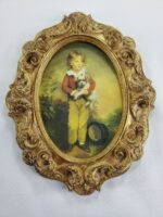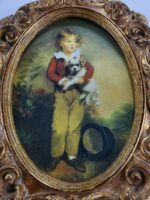 Master Simpson by Arthur Devis – Boy With Top Hat & Dog Fine Art Print displayed behind glass in a beautiful Gold Leaf Frame. The outer measurements are 10″ top to bottom 8″ left to right and the inner measurements are 7″ top to bottom 5″ left to right. The back of the frame says A Decorative Craft – Florentia – Hand Made in Italy with the number 1415. If you have any questions please just let me know and I’ll get back to you immediately.