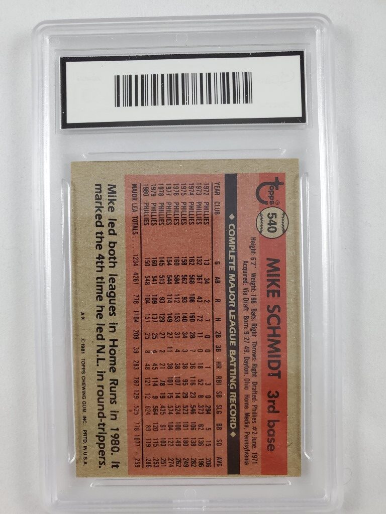 Mike Schmidt 1981 Topps GMA Professional Graded 8 NM-MT Baseball Card #540