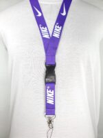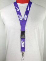 Nike Purple & White Detachable Lanyard and Metal Clasp. Take your game and your work to the next level with this stylish lanyard. The lanyard coloring is purple and the logo coloring is white. The lanyard measures a total length of 22 inches (56cm) and a 1 inch (2.5cm) strap width comfortably fitting adults. It features a detachable plastic buckle clip and a metal clasp at the end of the strap which is great for keys, ID’s, badges, name tags, cameras and more! This listing is for a single quantity lanyard per order. Discounts up to 15% off are available for multiple lanyards purchased. Take a look at our other items for sale for additional colors and designs.