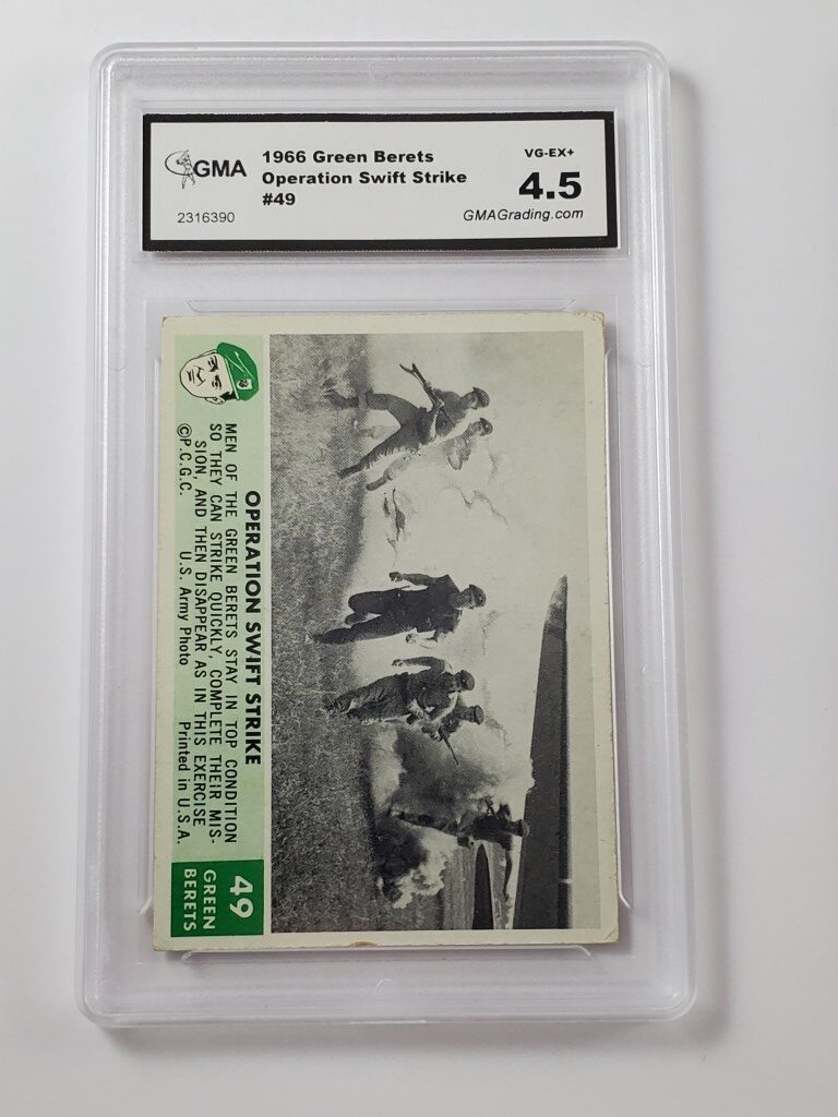 Home Shop Non-Sports/TCG Cards Military & Political Cards Operation Swift Strike 1966 Green Berets PCGC GMA Graded 4.5 VG-EX+ Card #49