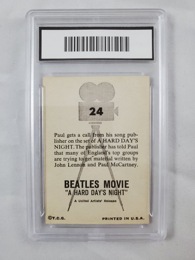 Paul McCartney 1964 Topps Beatles Movie “A Hard Day’s Night” GMA Professional Graded 5 EX Non-Sport Trading Card #24 – Paul Gets a Call from his Song Publisher on the Set