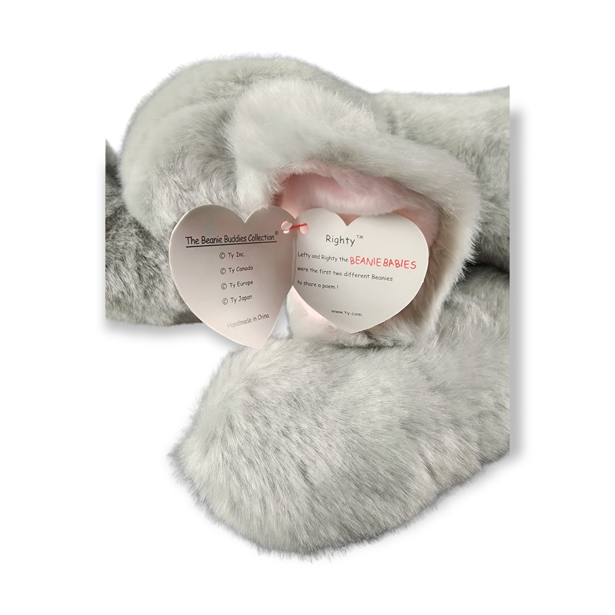 Righty the Elephant TY Beanie Buddies Collection 2000 15 inches Style No. 4085. All our beanbag plush items are in their original new condition. You may be assured your Beanie Buddy is clean, smoke free, dust free, pet hair free and has been stored safely in a climate-controlled room.