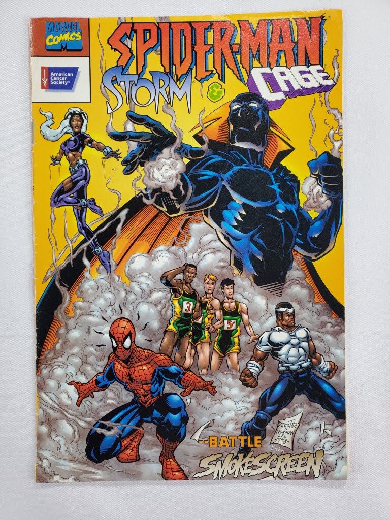 Spider-Man Storm & Cage Battle Smokescreen Issue American Cancer Society Promo Battle Smoking Marvel Comics 1998 Promo by David Tata & Norman Lee.