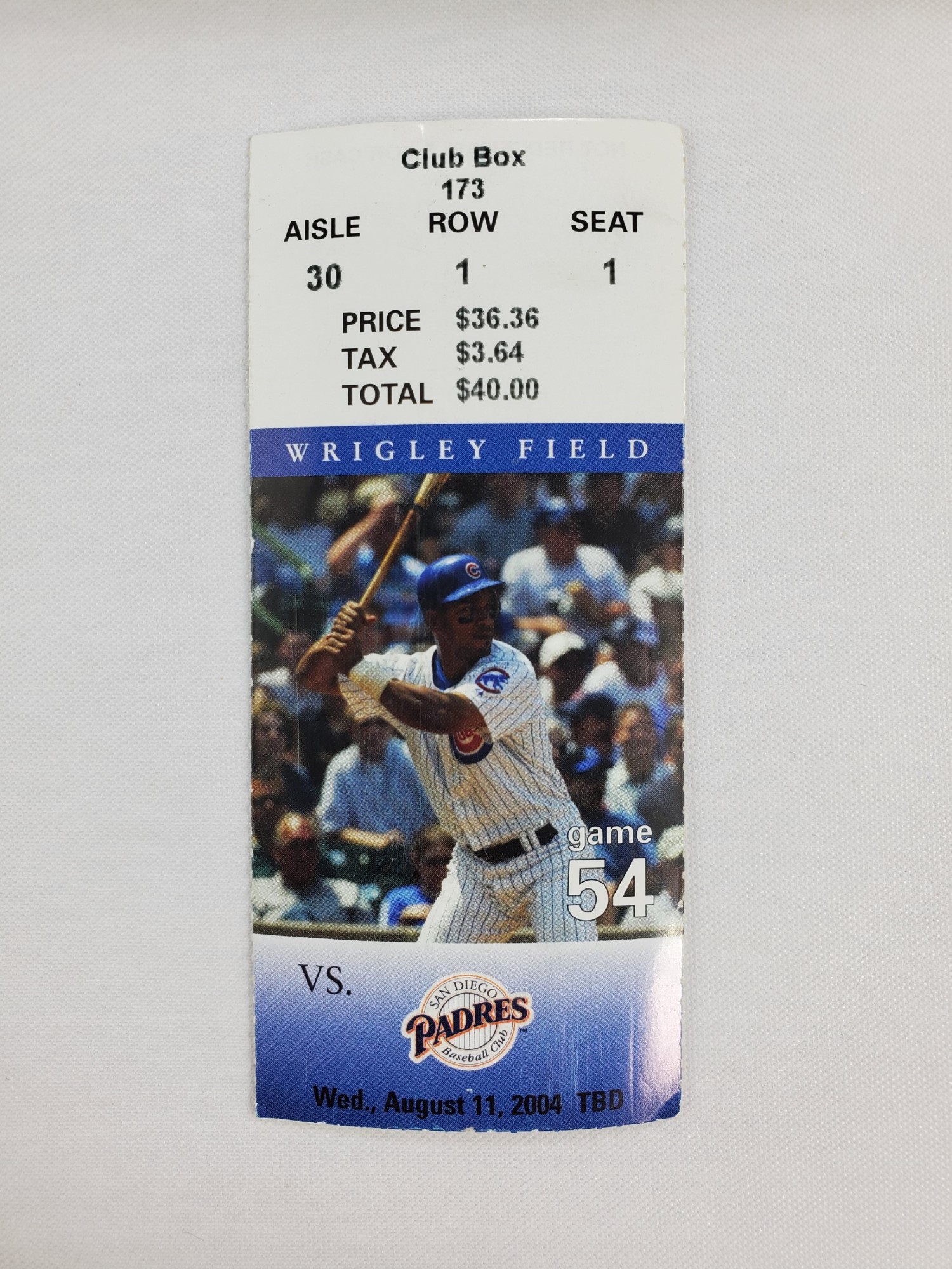 Terrence “T” Long Game Used Carolina Cubs Pro Model San Diego Padres Professional Baseball Bat – Included with the bat is the original Club Box Row 1 baseball game ticket from August 11, 2004 Chicago Cubs Vs San Diego Padres Game 54 played at Wrigley Field where this bat was used and first obtained. Each game used bat should be assumed to have a small crack in it, while others may be cracked more severely. Whether it be a crack, a chip, or completely broken bat, the ball player who used this bat chose to retire it from game use after it sustained one or more of the previously mentioned defects. This bat was most recently obtained through Hindman Auctions, one of the nation’s leading and most reputable auction houses. If you are interested in the proof of purchase for this item from Hindman Auctions, please leave us a note during checkout or you may send us a message once your order has been placed and we will be sure to provide you with a copy.