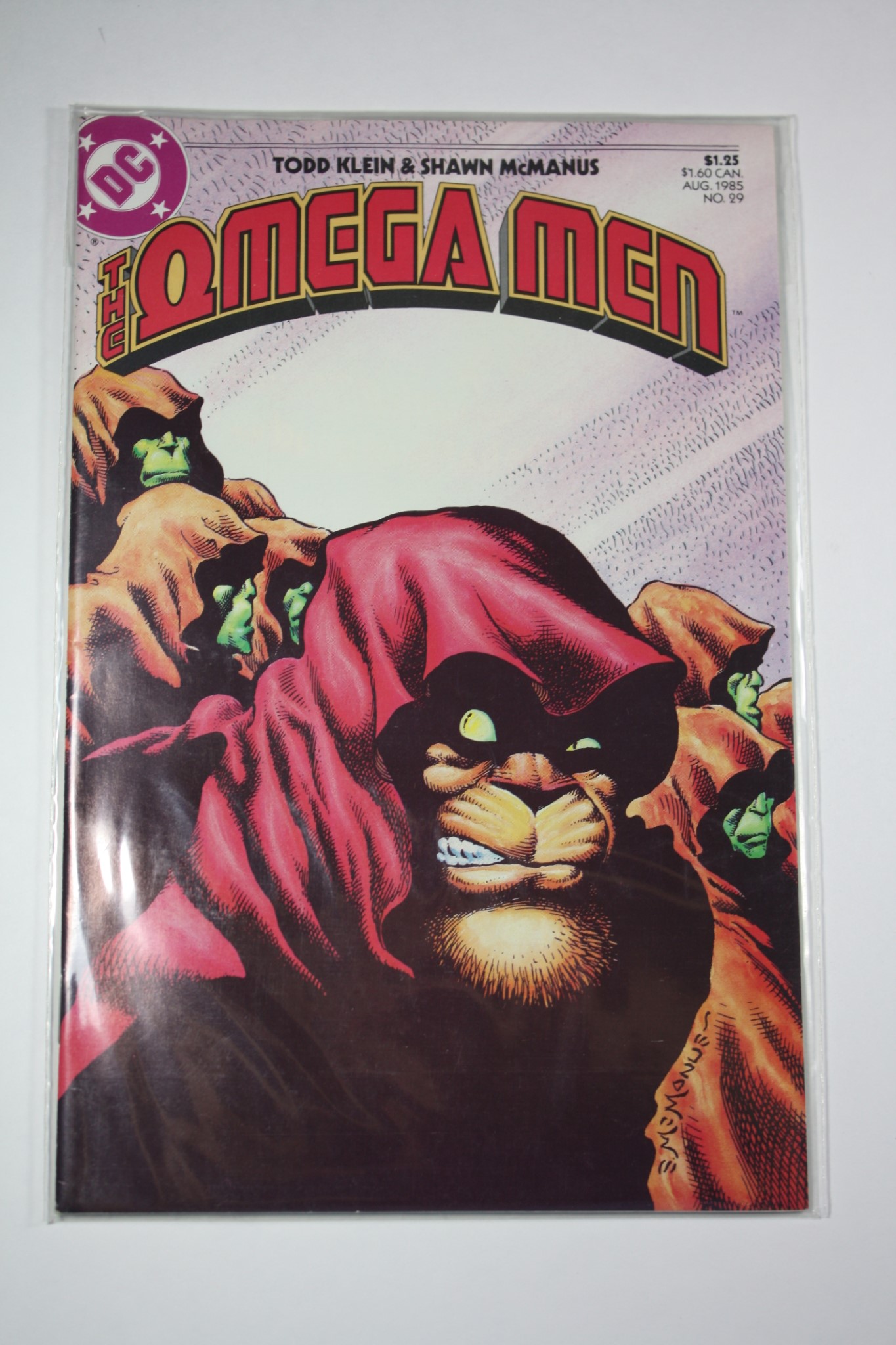 The Omega Men Issue #29 DC Comics 1985 Lethal Science! Featuring Omega Men, Green Lantern, Broot, Elu, Harpis, Kalista, Primus, Ryand’r, Tigorr & created by Todd Klein & Shawn McManus.