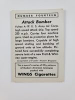 1940 Wings Cigarettes Modern American Airplanes No Letter Series T87 Vintage Card #14 – U.S. Army Attack Bomber Vultee A-19