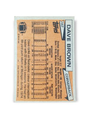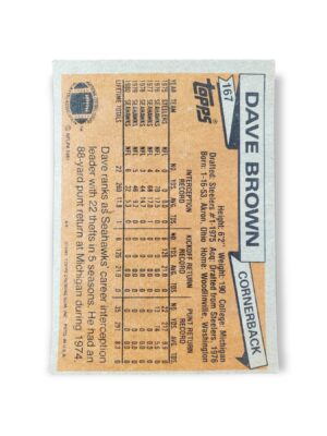 1981 Topps Football Dave Brown Card #167 Seattle Seahawks Trading Card