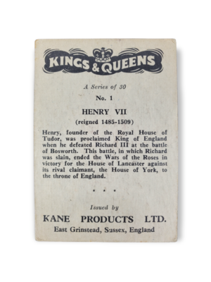 1959 Kane Products Ltd. Kings and Queens Henry VII #1 Trading Card