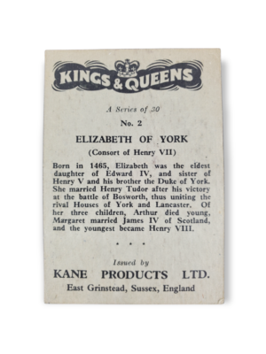 1959 Kane Products Ltd. Kings and Queens Elizabeth of York #2 Trading Card