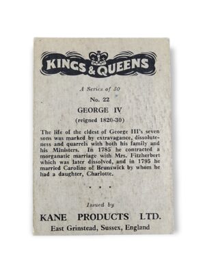 1959 Kane Products Ltd. Kings and Queens Card #22 George IV Large Trading Card