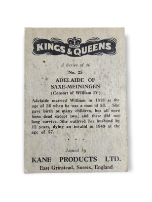 1959 Kane Products Ltd. Kings and Queens (Large) #25 Adelaide of Saxe-Meiningen